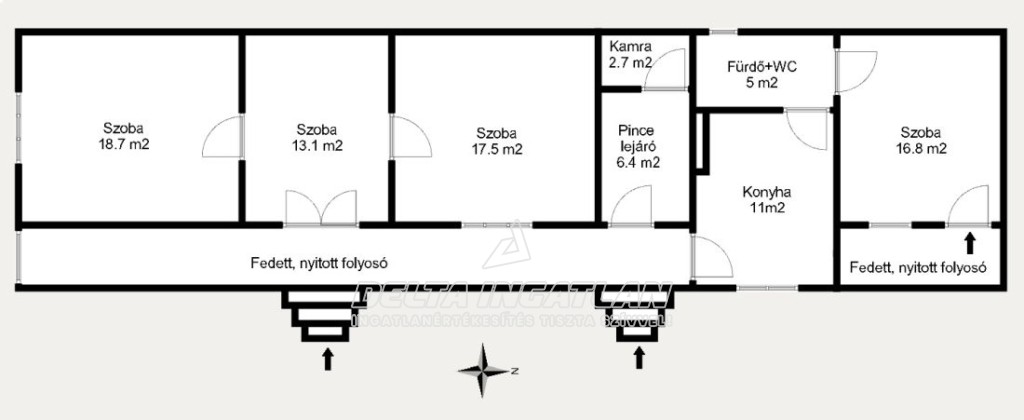 - a lakóház három szobája valamint a konyha, a fürdő+WC ill. a hátulsó szoba külön- külön bejáratról közelíthető meg, lehetőséget kínálva, hogy átalakítással 2 generáció együttélésére is lehetőség nyíljon